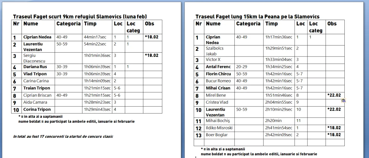 o harta cu toate traseele (harta trackuri martie.png) si explicatiile intr-un document word (Concurs prietenesc martie detalii.docx), mai jos:
