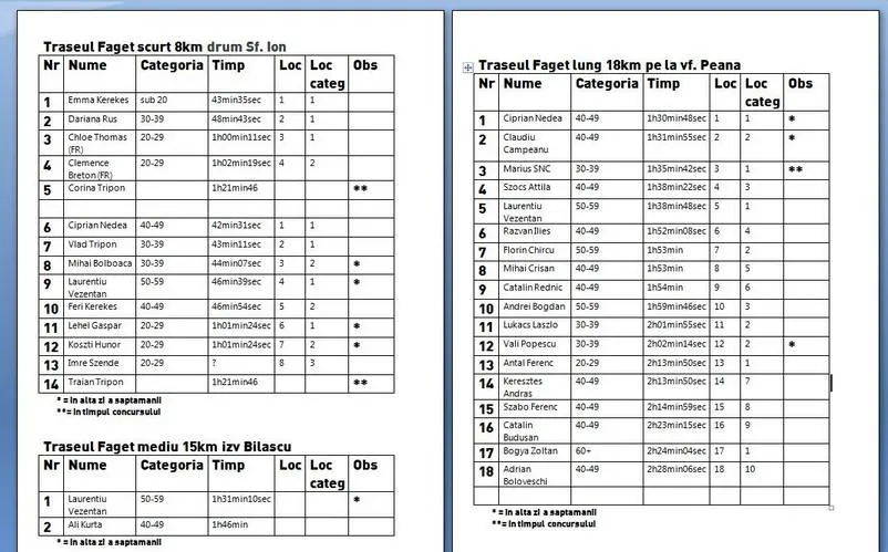 Sunt aşadar două trasee stabilite pentru alergare, iar pentru drumeţie este încă unul trecut. Căutăm un coordonator pentru drumeţie.