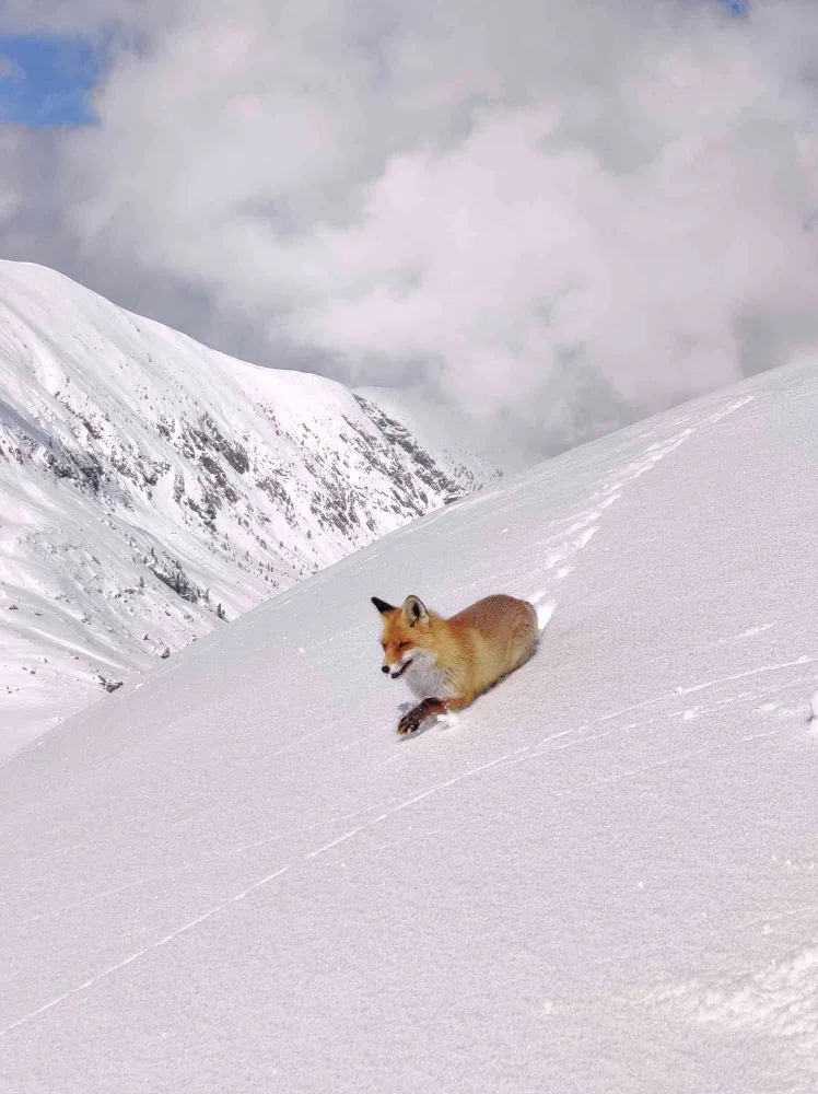 Sub un Soare strălucitor, sâmbătă dimineața am urcat pe Valea Pietrele. Am poposit la Bordul Tomii iar mai apoi, la Tăul Pietrele am cotit dreapta spre Șaua Stânișoarei unde am început urcarea pe Culmea Stânișoarei. Împărțiți în două echipe de câte trei, ghidați de Aurel, am parcurs o parte din Creasta Stânișoarei fiind însoțiți de Victorița, una dintre vulpițele care dă târcoale cabanelor și corturilor de prin Retezat.
