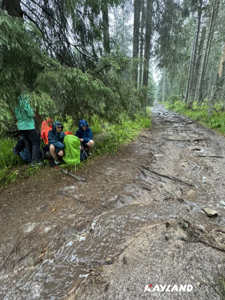 Deși ne aflam într-o perioadă cu temperaturi caniculare, norii s-au adunat deasupra muntelui și am primit o repriză sănătoasă de ploaie, ce ne-a făcut să ne adăpostim circa 40 de minute până a trecut de noi frontul central cu precipitații.