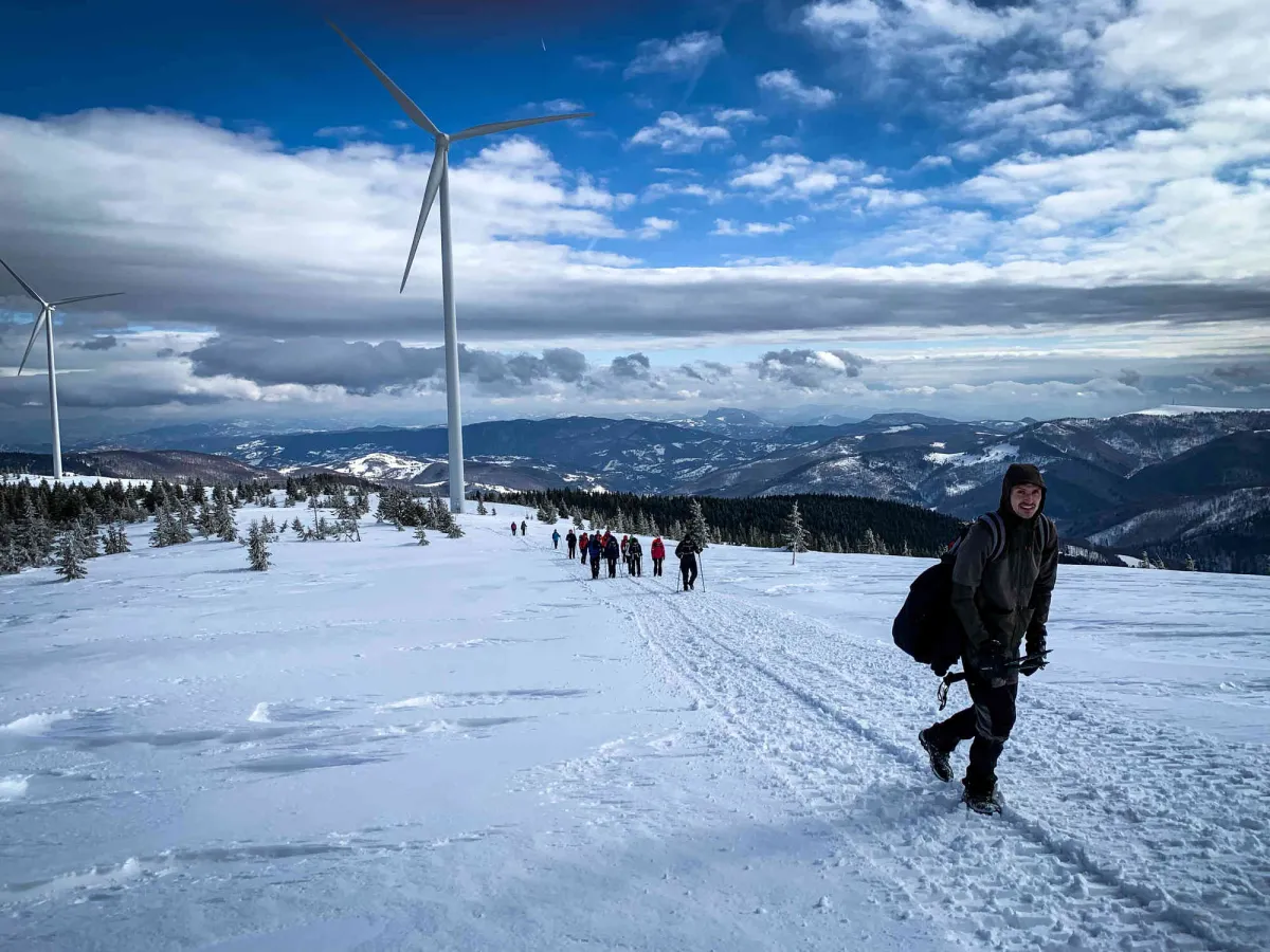 Ne-am luptat cu nămeții, iar eforturile ne-au fost răsplătite de priveliști cuprinzătoare și de raze de soare ce s-au împletit cu norii spulberați de vânt. Platoul din golul alpin este presărat cu 5 eoliene care au fost construite aici în anul 2015. Ele fac ca peisajul să fie parcă și mai grandios, desprins dintr-o lume science-fiction.