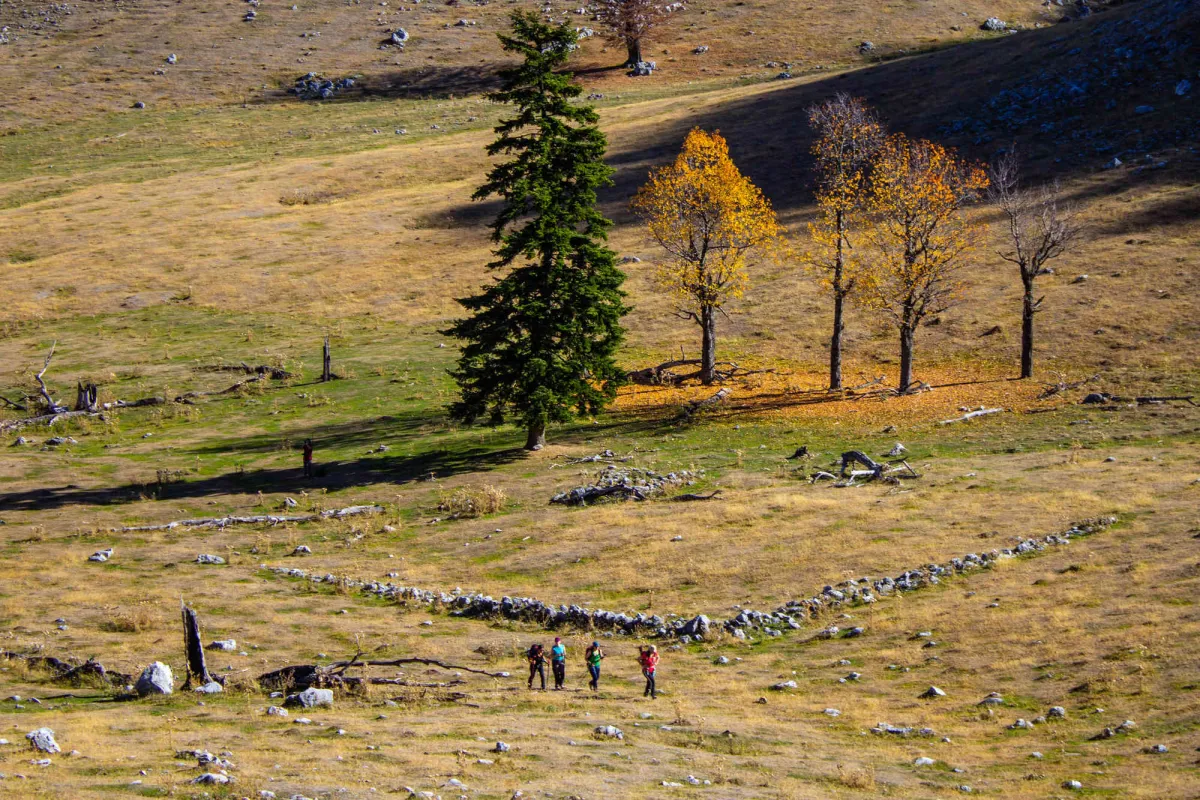 Diminețile ne trezim începând cu ora 5:00 astfel încat la ora 7:00 pornim la frontale gata de drum, pentru a ne bucura de cele aprox. 11 ore de lumină care ni le oferă fiecare zi de sfârșit de octombrie. În ziua de vineri am avut planificate crovurile din Mehedinți, minunății ale naturii amplasate la noi în țară. În câteva vorbe acestea sunt „pâlnii” cu fundul plat datorită sedimentării și „înfundării” cu calcar, delimitate și înconjurate de pereți de calcar, situate la mare altitudine, crovul Medved fiind cea mai mare dolină din tară aflată la o altitudine de circa 980 m. Crovurile sunt înșiruite paralel cu peretele Mehedințean delimitat de Valea Cernei, oferind un peisaj unic, ascuns privirilor, parcă nepământesc în orice anotimp, datorită unor decoruri minimaliste cu amfiteatre înconjurate de lapiezuri, pâlcuri de fagi și pinii negri de Banat care își fac apariția în blocurile de calcar.