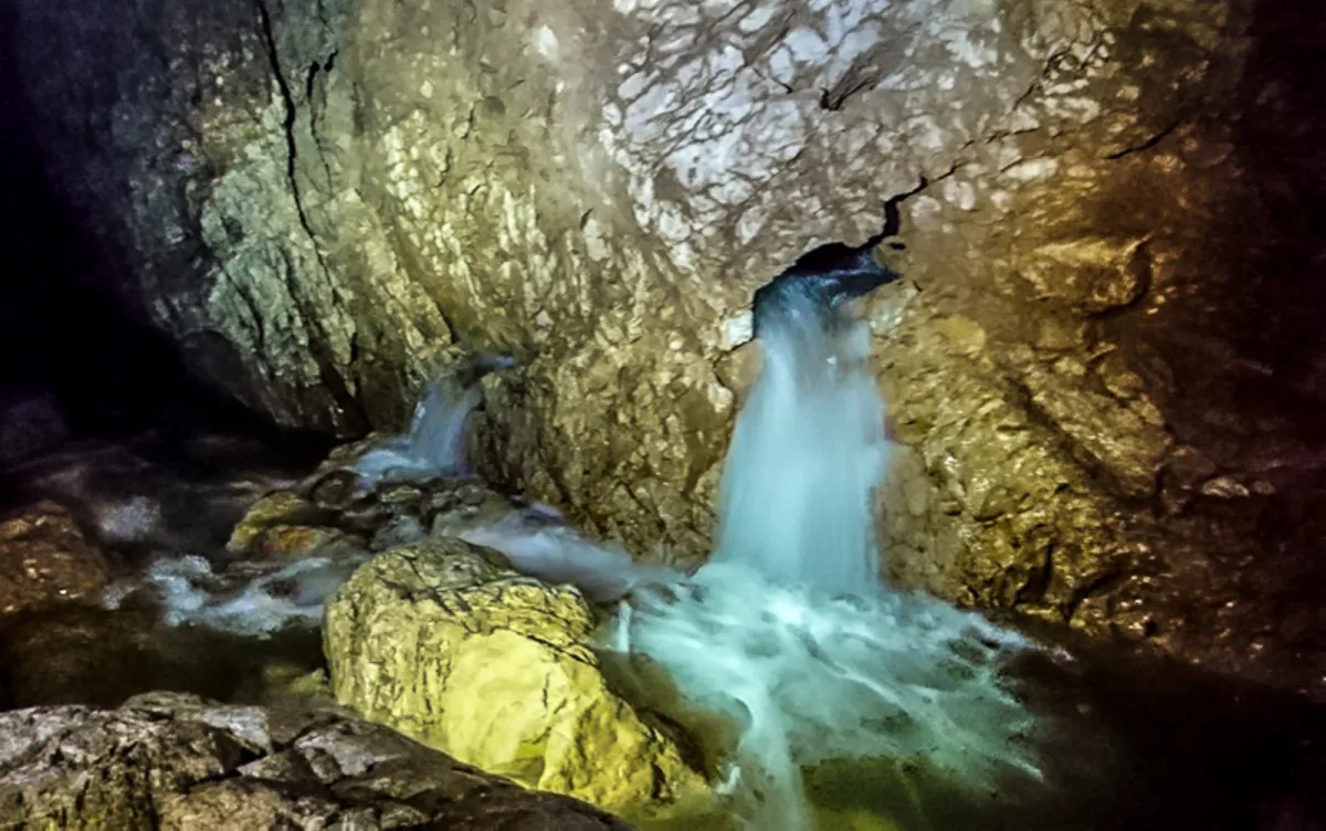 Sâmbătă dimineața, după ce am luat micul dejun, am coborât toți 15 prin pădure pe poteca marcată cu PA până în Dolina 1,de unde am trecut în Dolina 3. De acolo am coborât spre dreapta, pe o panta abruptă spre firul apei din subteran de unde spre stânga e varianta pentru speologi (cu lacuri de trecut înot, etc), iar spre dreapta varianta noastră, a drumeților. Apa era mică, așa că am putut merge ”din piatră în piatră”, mai comod pentru cei care nu și-au uitat bețele acasă. Mai toți aveam frontale , dar după o vreme, când lumina ce pătrundea prin tunelul pe care am coborât scădea treptat, din față și de sus ne-a luminat alt ”proiector” dinspre Dolina 2. Dl. Dinu, care mergea în față a căutat și găsit pe peretele din stânga noastră cele doua “nări “ din care țâșnește apa, nări pe lângă care – ne spune dânsul- au trecut mulți neinformați despre existența acestora. Luminate cu mai multe spoturi de frontale, le puteți vedea în una din imaginile alăturate. Alte imagini din subteran se pot vedea mai mult cu imaginația, căci n-am avut trepiede și nici blițuri! Acel interior de ”catedrală” impresionantă în care se aude orga micilor cascade, trebuie văzut cu ochii și sufletul !