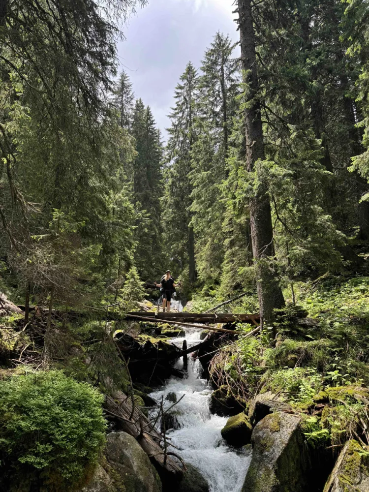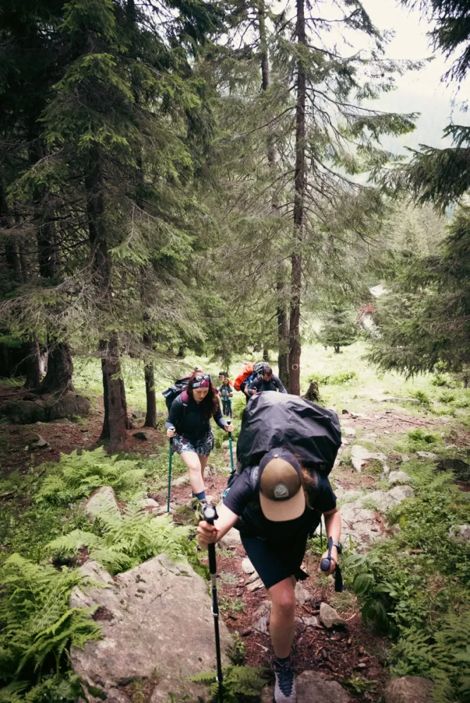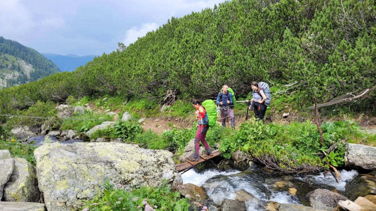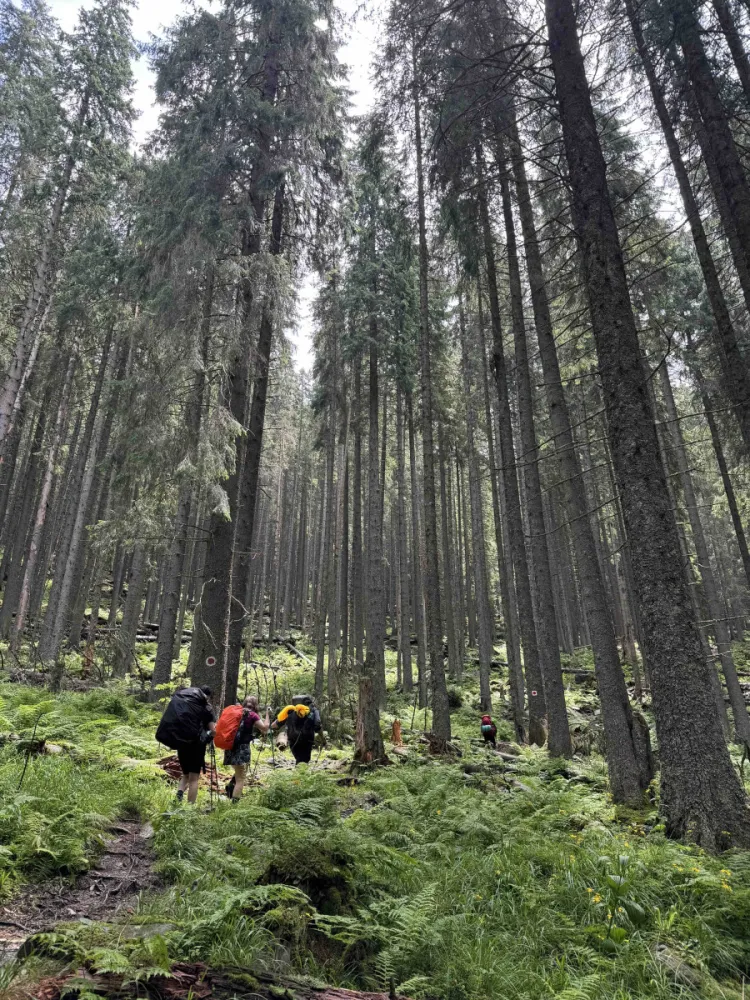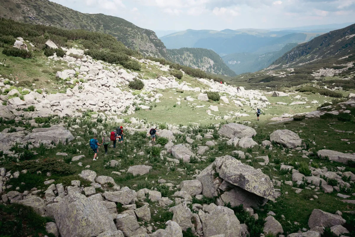 Determinati sa ajungem la locul de campat inaintea celor 5 drumeti, plecam pe urmele lor. Dupa o urcare sustinuta printre jnepeni si pe firul apei, in spatele lor, acestia hotarasc sa ne faca loc sa trecem in fata, moment in care cei mai rapizi membri ai echipei noastre ii depasesc pe toti. Apoi, noii nostri colegi de drum se opresc la lacul Zanoaga Stanei. Nu suntem siguri daca acolo voiau sa campeze de la bun inceput, sau s-au demoralizat doar, cand au vazut ca majoritatea dintre noi erau deja in fata lor.