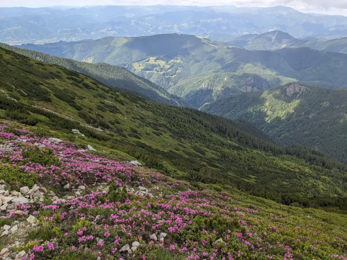 La coborarea de pe vf Carja, ceata a inceput sa se risipeasca si Parangul a decis sa se arate in toata splendoarea lui cu rododendronul inflorit. O minunatie!