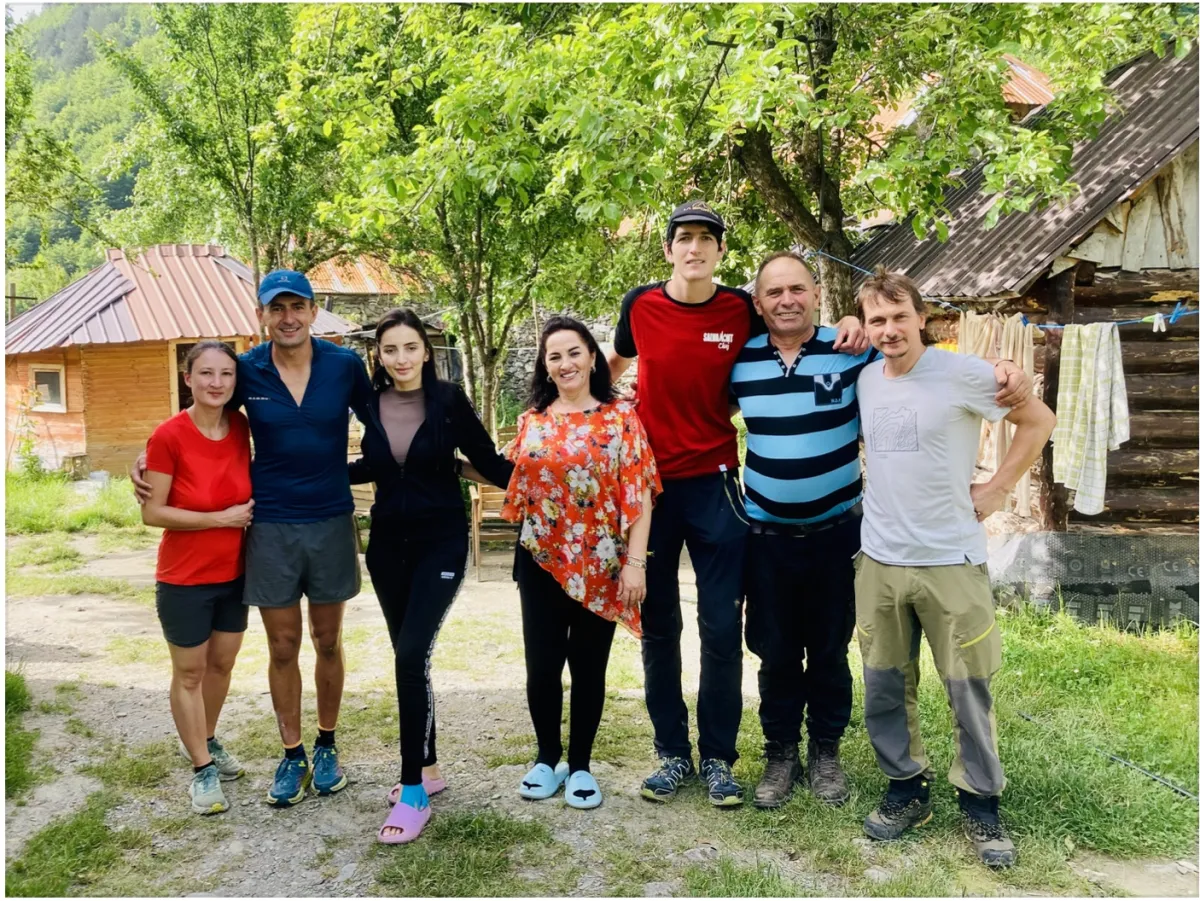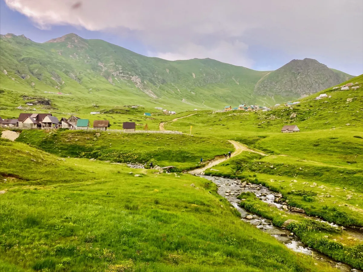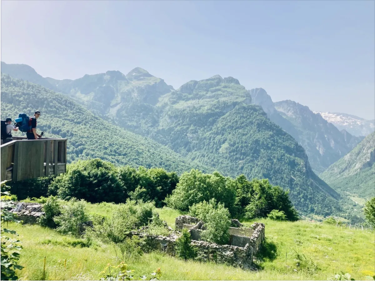 Poteca ne duce pe langa izvoare, poieni de flori si paduri de conifere. Vlad se ascunde in tufis si o sperie pe Oana. Tunetele si norii ne previn ca se apropie o furtuna, dar grabim pasul si in 2 km ajungem la refugiu. Vedem primele case, un pod peste parau si primim un bust de energie. Ajungem la 15:55 la cazarea Bashkimi si salutam cu *Guzoar(*noroc), salut pe care gazda de ieri ne invata sa spunem. Facem un dus cald, ne adapostim de furtuna si asteptam cina. *Faleminderit (*multumesc)