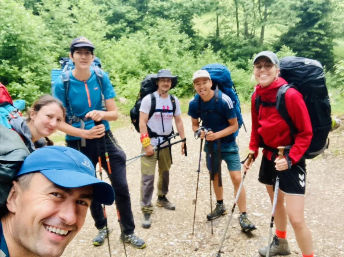 Este 18:50 si urcam pana la cazare, inca 2 ore la deal. Trecem podul peste rau si vine o mașina Dacia Dokker. Hanna si Ramon fac semn si soferul opreste. Ne inghesuim toti in spate si radem de experienta aventuri noastre. La 19:17 ajungem la Am ajuns la Te Liqeni. Intrebam de cort, dus si inghetata. Campan gratis in padure si mancam din traista pentru ca la restaurant este prea scump, iar dusul este cinci euro. Ne revedem cu Loti si Alice, si mergem la baie dupa apa, unde improvizam pe piesa “Flowers”. Privim apusul, dormim in padure, la cort, si adormim pe ciripitul pasarilor. Faleminderit (*multumesc)