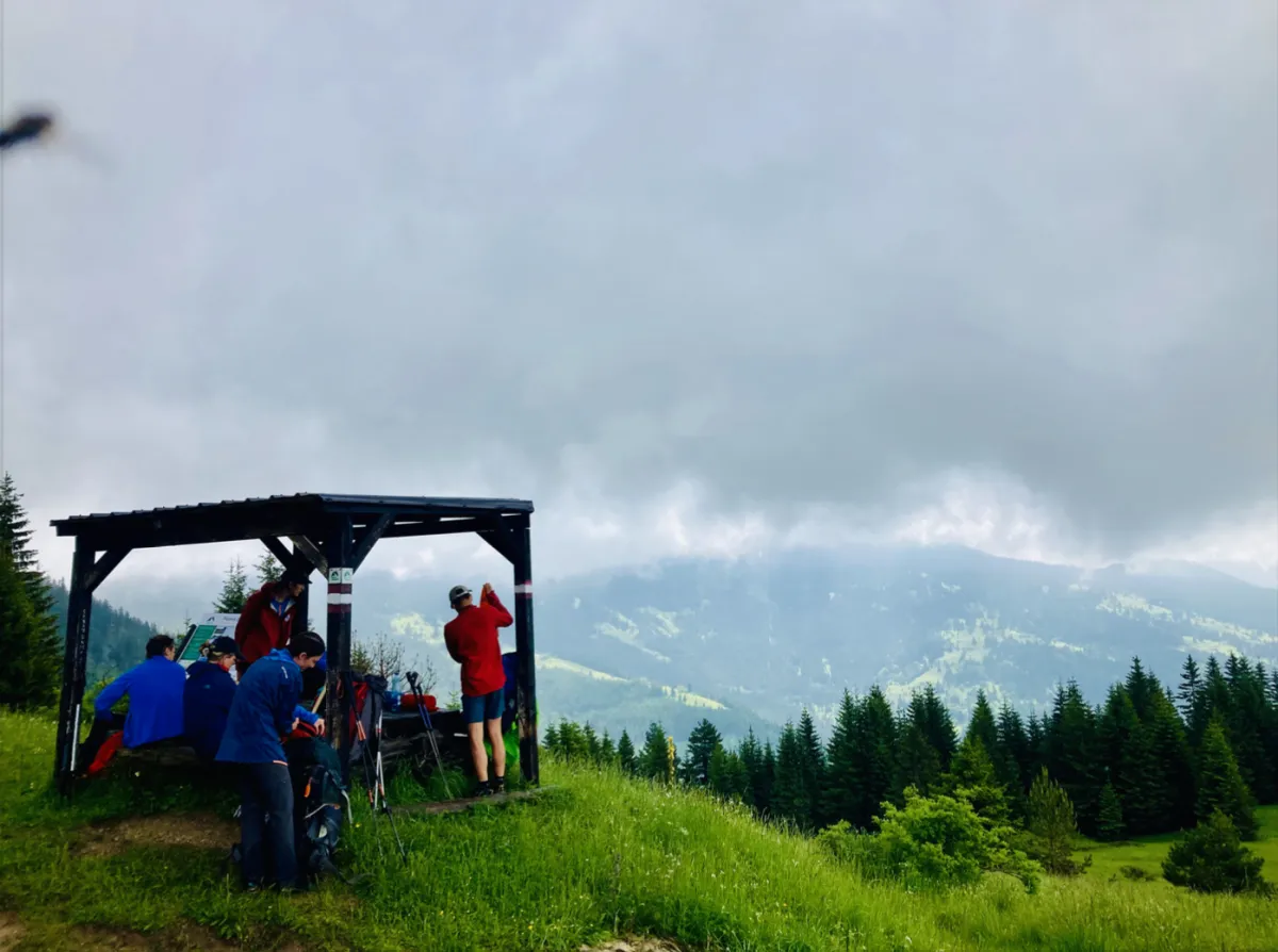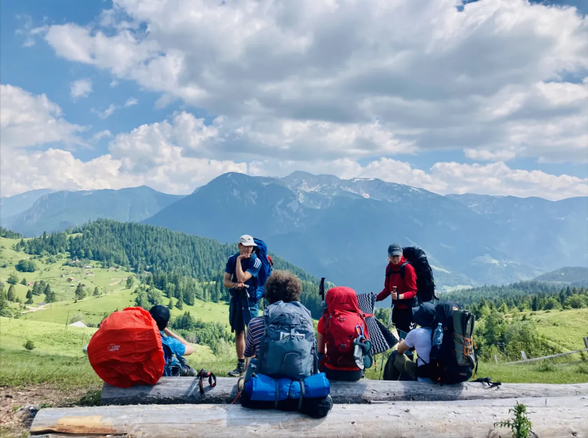 Coboram si ne oprim la foisor, ne revedem cu Whitecliff si mancam toti din traista. Ajungem la Pepaj 1575m si dam de o stana, peisajul este mioritic. Un miel iese prin gard si Hana, Oana, Ramon, Whitecliff si Vlad fac echipa sa-l prinda. Oana il prince de picioarele si il baga cu capul prin gard. Team work, makes the dream work. Facem un popas pe cativa busteni mari si ne motivam ca vom gasi inghetata si ciocolata la magazinul din sat.