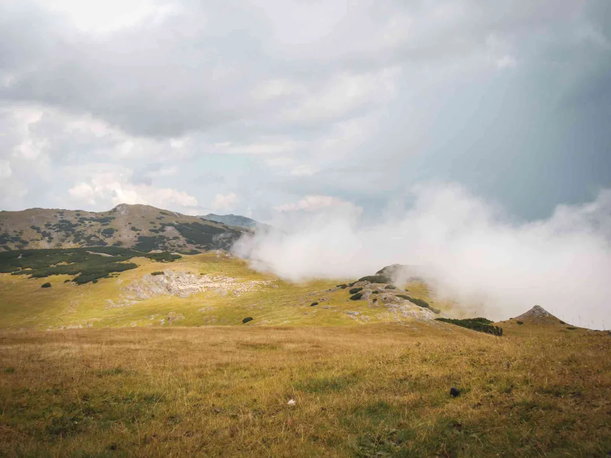 Imediat ce ne trezim, o altă formație mare de oi trece prin fața corturilor noastre. Consultăm o hartă și o luăm din loc, elementele definitorii din prima parte a zilei fiind mulțimea de doline și un individ aflat în căutarea calului său negru. Ploaia nu reușește să ne evite, dar bine că suntem în pădure și folosim coroanele copacilor drept acoperișuri. Înaintăm, iar următoarea masă pe care o luăm e compusă din afine și merișoare. Trecem și de vârful Paltina (2152m) și admirăm superba panoramă spre vârfurile înalte din Retezat.