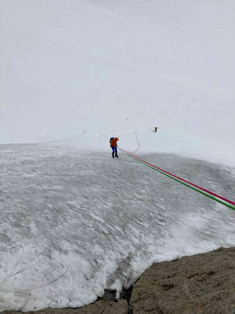 Dupa multe discutii de ruta pe care sa o parcurgem, ajungem la un conses si anume SE ridge Tour ronde. Dupa ce schimbam doua telecabine pana la Ref Torino ajunge iar pe ghetar, de data aceasta pe partea italiana. Pornim catre inceputul crestei grabiti dar nu ignoram crevasele deschise si facem scurte pauze pentru a le evalua. Dupa cativa metrii in traseu intalnim o echipa de alpinisti care deja se retrageau. Dupa ce schimbam cateva vorbe despre starea traseului aflu ca unul din ei are 74 de ani - impresionant!, inca un model de urmat. Traseul in sine a fost spectaculos, cu pasaje de creasta foarte ascutita si expusa. Ajunsi la finalul crestei decidem sa nu mai urcam pana pe varf deoarce trebuia sa ajungem inapoi la telecabina. Ne retragem in rapeluri peste o panta de zăpadă moale (fiind topita de soarele puternic de peste zi).
