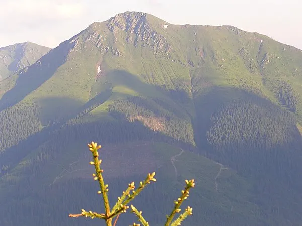 Dupa pauza de masa si aprovizionare cu apa, am continuat 4 ore pe fasia de granita defrisata, peste Holovaciu (borna 373), Bendreasca ( 377), Micu Mic (borna 387 ). In fine, in prag de seara , la 19.40, dupa aproape 14 ore de la "start" , am iesit in fine din padure si am montat corturile in poienite dintre jnepeni. Dimineata de duminica am dat desteptarea la 7, plecarea era anuntat la 8.30. Dar Mircea si cei dijn cortul lui, dntr-o neatentie, au fost mai ...harnici si la 7.30 erau gata de plecare ! Asa ca au mai motzait pe izolire inca o ora. Am urcat Micu Mare (cel cu "trepiedul" mare metalic), iar din saua urmatoare, cea dintre Micu Mare si Steavu, de la borna 398, am parasit granita spre dreapta, pe poteca ce ne-a dus prin padure si poiene pana pe Farcau - 1956,5 m, cel mai inalt punct al M.Maramuresului.