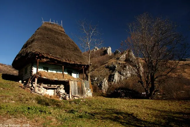 Urcusul pana la prima casuta cocotata in bot de deal e oarecum sustinut, printr-o padurice si-o panta ce ne face insa sa simtim prin toti porii mirosul de toamna tarzie...