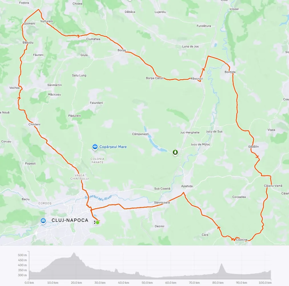 - Cluj - Vultureni - Răscruci - Bonțida - Gădălin - Cojocna - Sânnicoară - Cluj