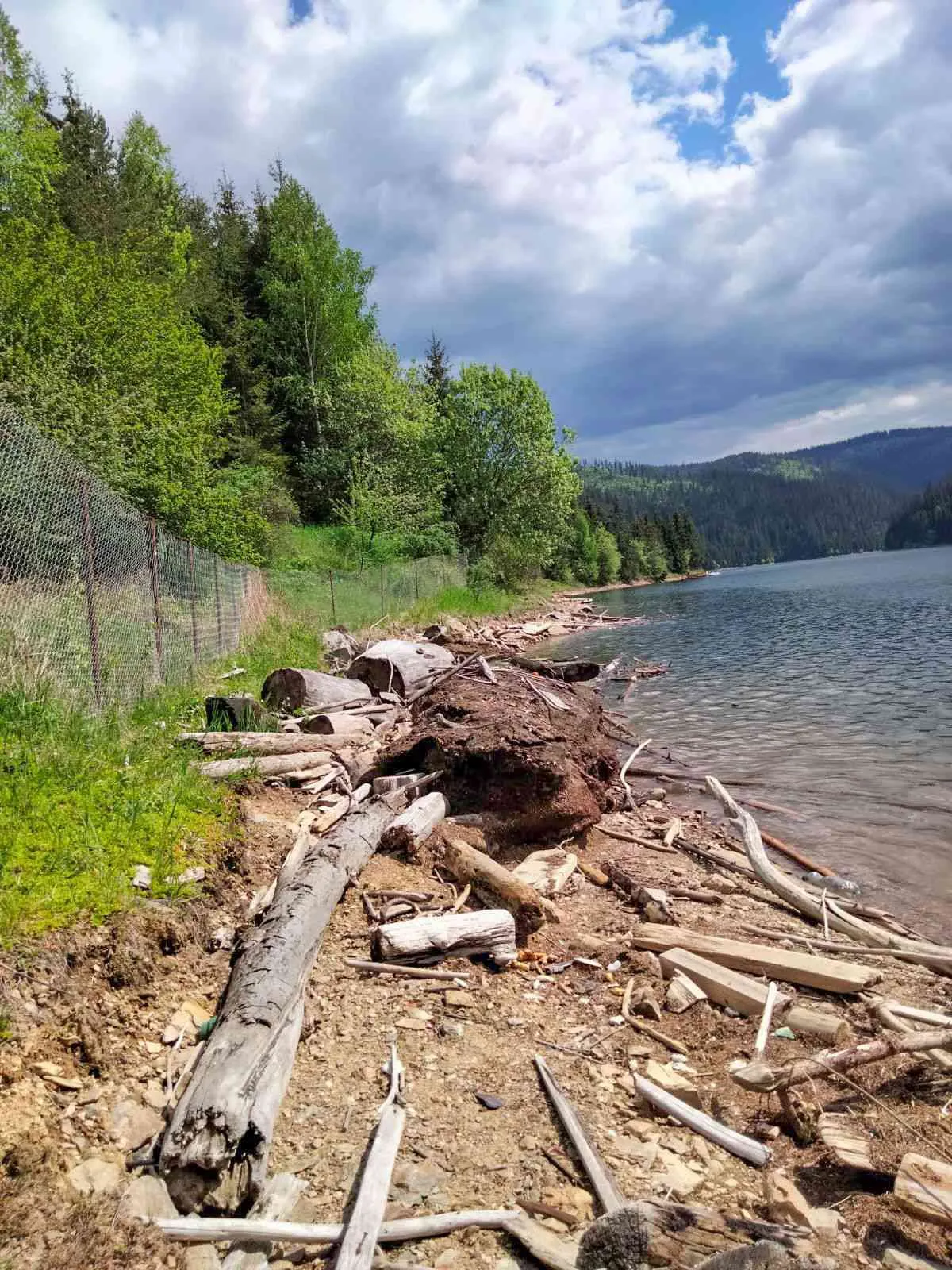 Echipa “Ture cu caiacul 3” coordonată de Ovidiu Motioc avea să se deplaseze până în coada brațului văii Belișului, aproape de cantonul Ciurtuci. Aici era poarta de intrare în lac pentru cele mai multe deșeuri. Soseau dinspre Poiana Horea. Aici găseam o altă zonă dificilă, cu mari încărcări de deșeuri, era o porțiune mlăștinoasă cu namol.
