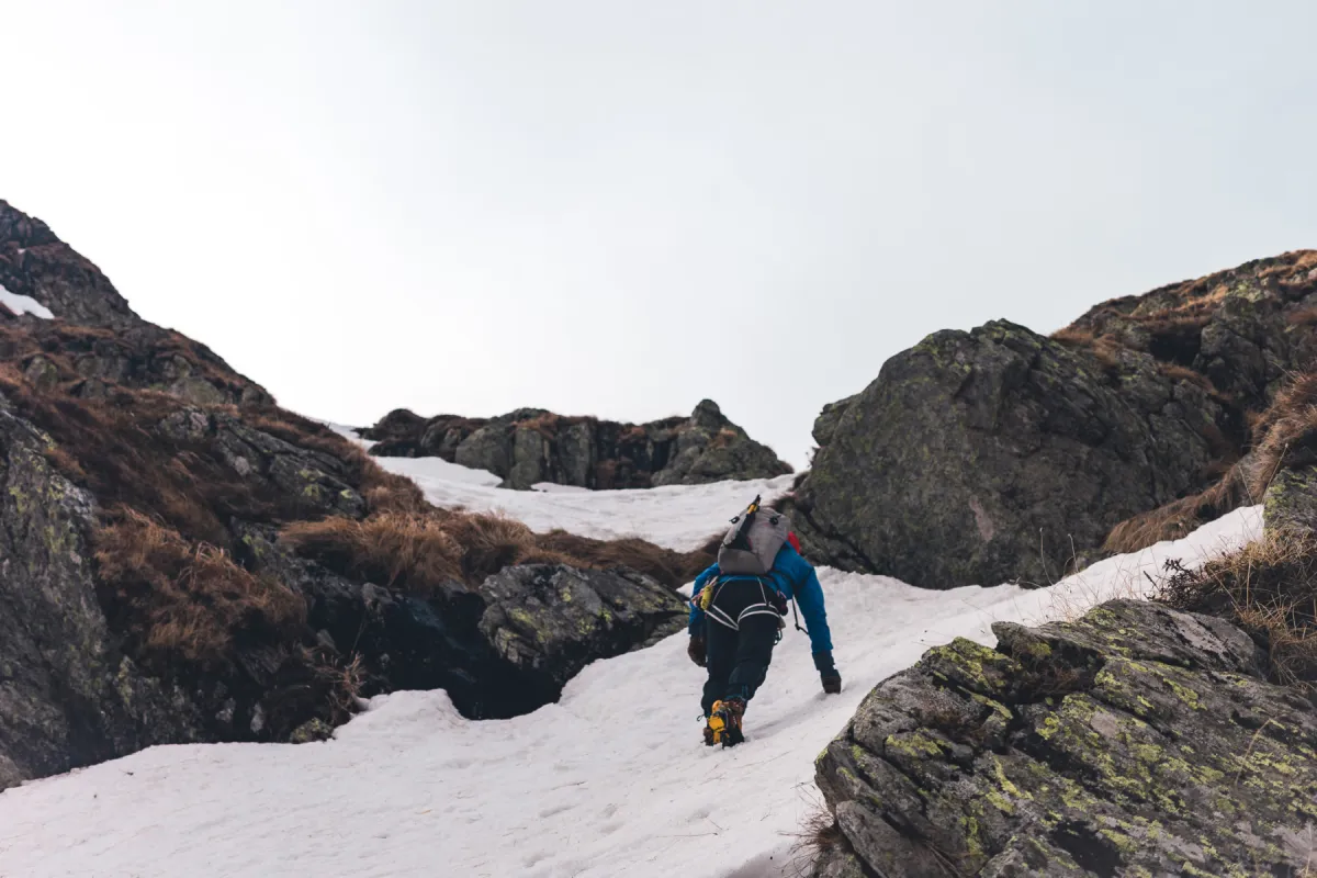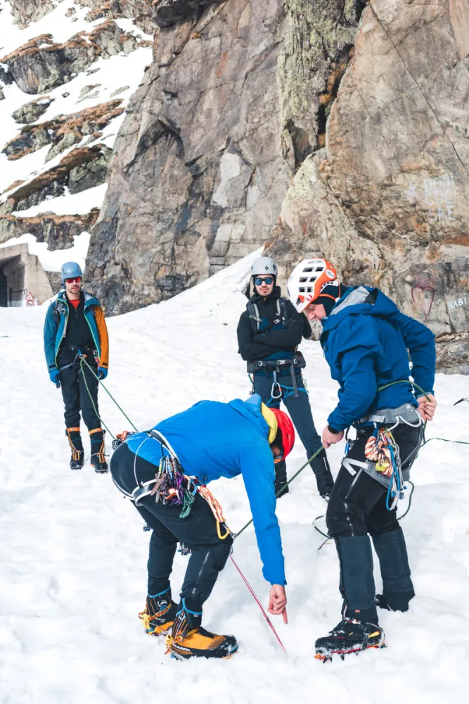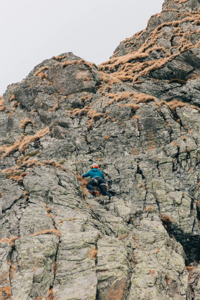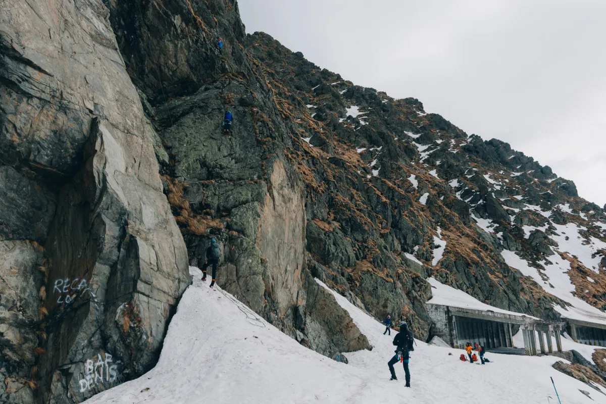 Sâmbătă dimineață, după micul dejun, ne-am îndreptat spre stâncă pentru a exersa dry tooling-ul. Am avut ocazia să parcurgem două trasee, învățând să ne folosim echipamentul cu precizie. Pe lângă asta, am făcut și un exercițiu de salvare din crevasă și tehnici de asigurări mobile.