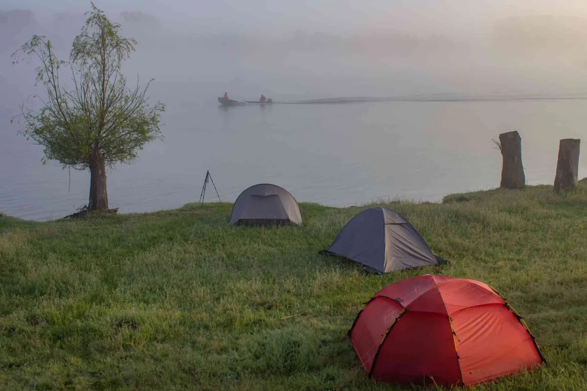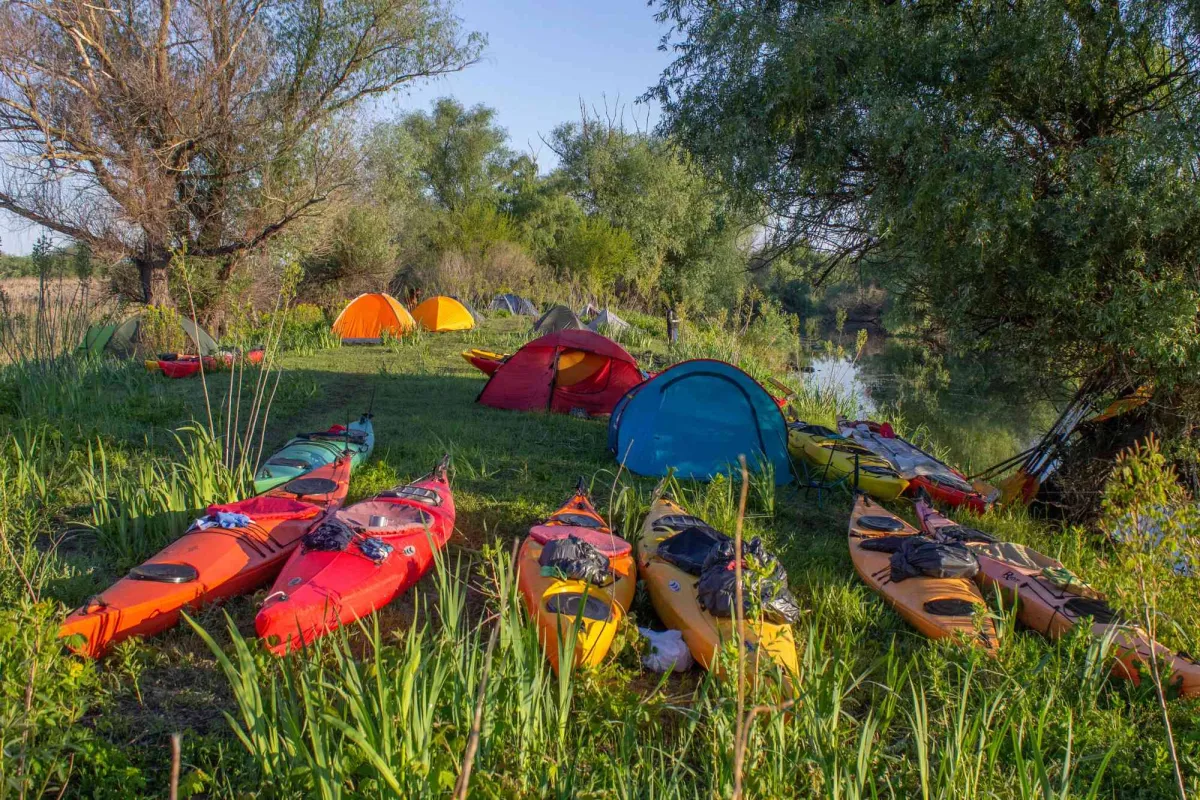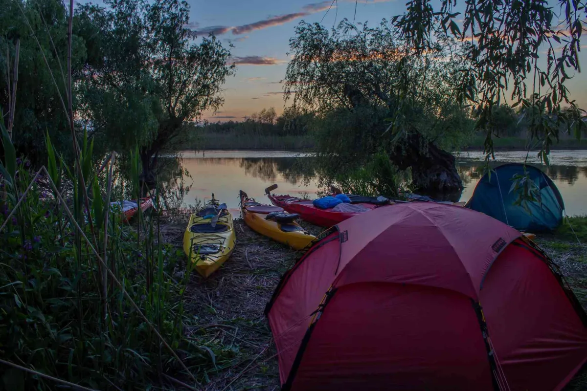 Tura a debutat cu regruparea din Tulcea după o torențială sănătoasă care a udat bine digul de pe malul Dunării unde aveam să ne instalăm tabăra de corturi. Odată cu apariția întunericului aveam să descoperim că urma să avem parte de o tură cu seri liniștite fără atacul „hoardelor” de țânțari. Vremea instabilă aduce cadre unice pentru fotografi iar după câteva poze pe malul Dunării ne stârngem tabăra de corturi și ne deplasăm pe pontonul de la Dana 1 Mai. De acolo ne transferăm cu barca cu motor până în inima Deltei pe platforma pescărească a lui Nea Vasile, situată pe canalul Șontea Nouă. Acolo ne așteptau caiacele pentru îmbarcare și un loc fain de corturi pregătit pentru noi de Nea Vasile. În prima zi am făcut un circuit de circa 11 km prin păduri inundate aproape de lacurile Nebunu și Pintilie apoi am admirat de la distanță câteva locuri de cuibărit unde era o larmă infernală a păsărilor, fără a deranja însă gălăgioasele aflate în cuiburi. În zona dădeau târcoale ciorile care speculau orice ocazie de a fura ouăle din cuibare. La Nea Vasile ne aștepta o masa pescărească tradițională preparată la ceaun.