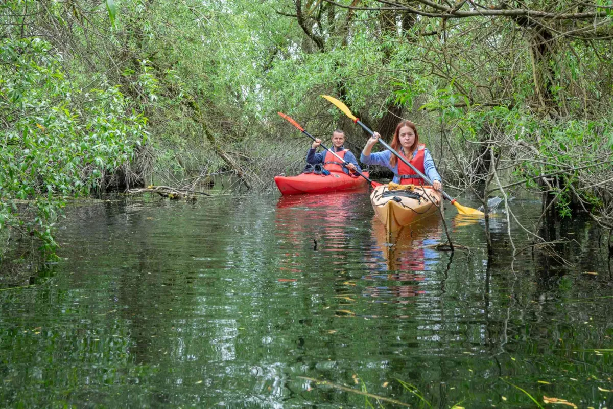 Poate vă vor îndemna și ele spre acolo ! Unde veți face o altfel de drumeție: nu veți da din picioare, ci din brațe ! Am avut norocul ca în recenta tură prin mirifica Deltă, să nu padelăm doar pe canale și lacuri, ci și prin pădurea inundată ! Deși ca ”șofer de caiac” eram începător, am învățat rapid să mă descurc, chiar dacă la unele ”curbe” strânse, trebuia să dau și cu spatele, cum văzusem că făceau autobuzele pe șosele ”transfăgărășene” din Alpi, cărora li se dădea prioritate.