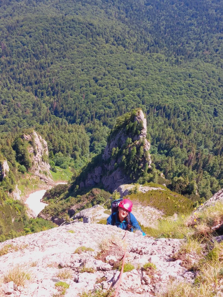 Scopul iesirii este familiarizarea cataratorilor cu noi pereti si cu expunerea in mod cap de coarda. Si Oana si Ariadna isi fac curaj.