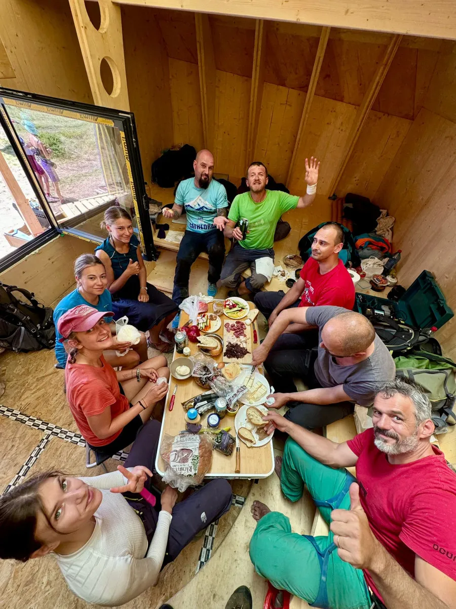 Totul a fost realizat cu forța de muncă a colegilor noștri, care au urcat, au cărat, au forat și au montat - într-un efort coordonat, făcut din pasiune și simț de responsabilitate față de munte.