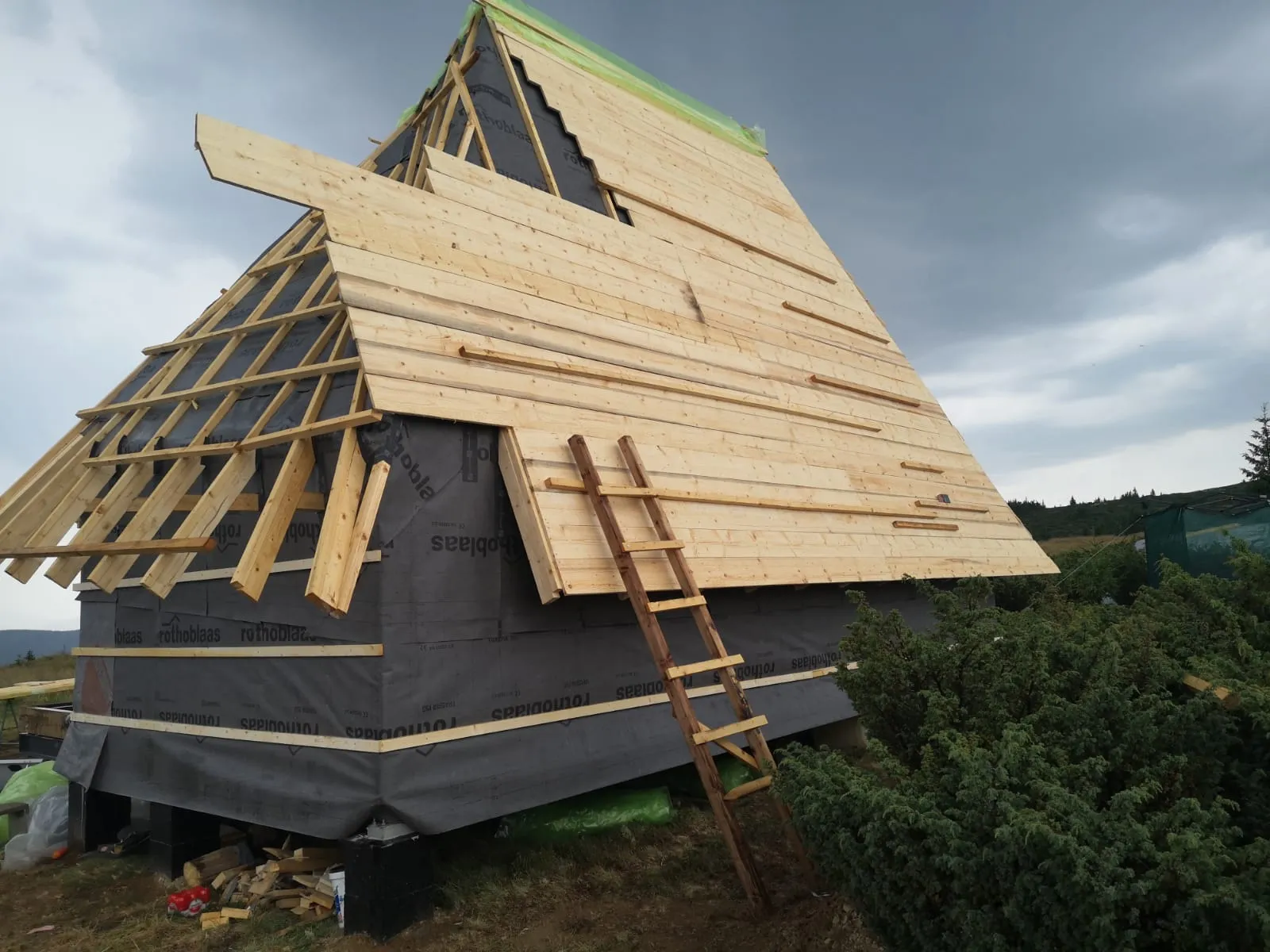 🔸 Aproximativ 70% din astereala acoperișului (scândura care va susține învelitoarea de tablă) a fost montată;