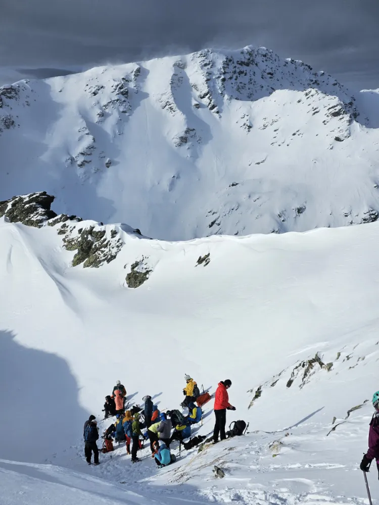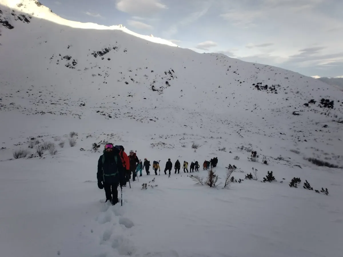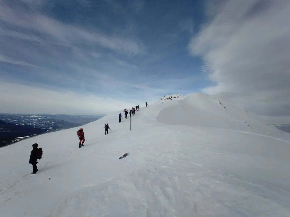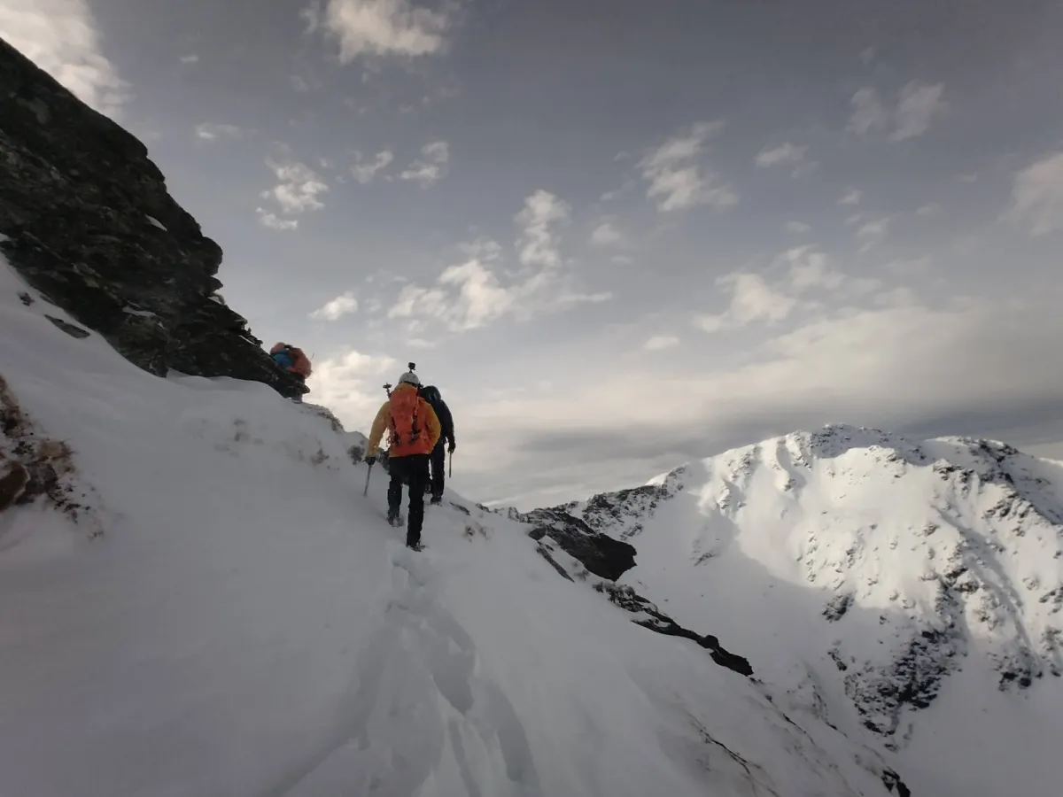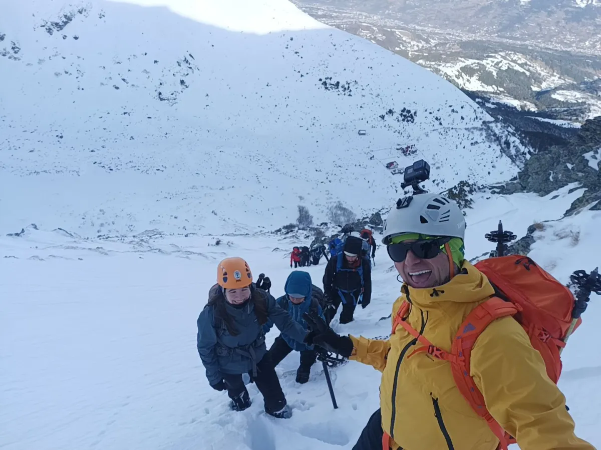 Dimineața, cu echipamentul pus la punct și chef de munte, am pornit la drum. Trupa a fost surprinzător de omogenă, deși eram destul de mulți. Vremea nu ne-a iertat – în creastă vântul sufla cu 40-50 km/h, testându-ne rezistența și hotărârea. Cu toate astea, am ținut ritmul și ne-am bucurat de fiecare pas făcut spre vârf.