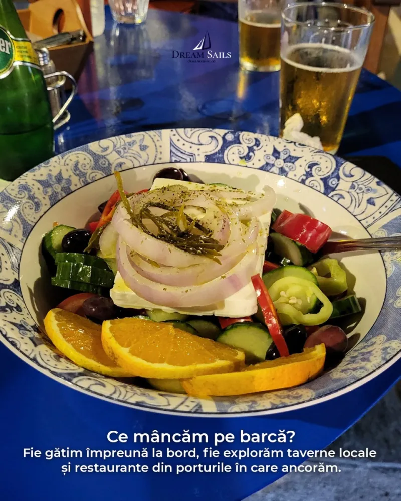 - La ora 15:00 ajungem in Marina Alimos și ne organizăm pentru cumparaturi. Se va cumpăra majoritatea mâncării și băuturii pentru cele 7 zile, urmand să mai facem pe parcus mici cumpărături. Barca va fi preluată la ora 17:00 iar plecarea din port se va face de îndată ce toată lumea împreună cu cumpărăturile vor fi la bord. Vom naviga timp de 3 ore până la portul din Aegina unde vom servi cina.