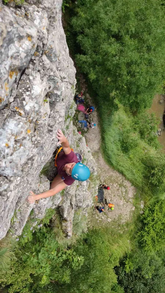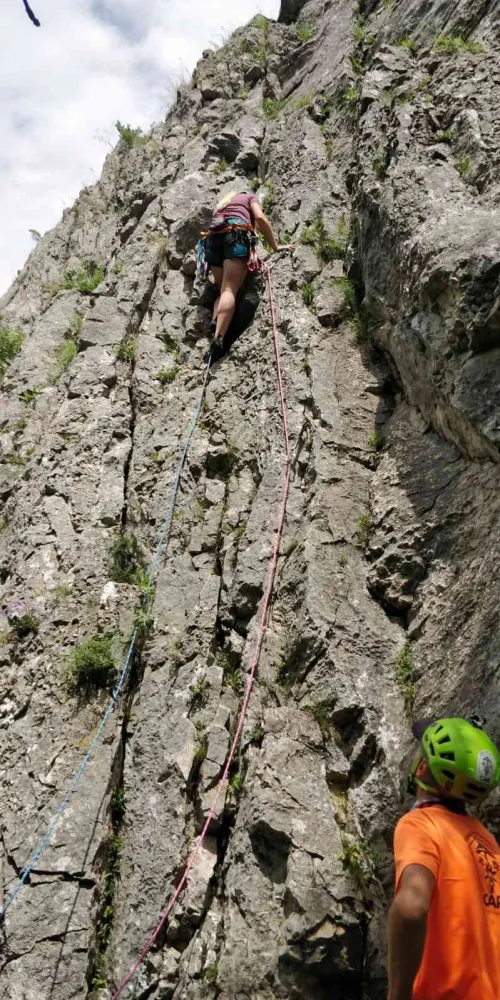 A doua zi ne-am trezit cu roua rece de pe iarbă și am început o nouă zi, gata de să descoperim alte lucruri noi și să practicăm ce am aflat deja. Am recapitulat ce învățasem, apoi am format echipe ca să parcurgem trasee de cățărare tradițională: Școala Turdeană și traseul Biți în manieră de multipitch. Toate acestea printre picuri, după ce ploaia ne-a împrospătat și ne-a dat mai mult chef de treabă.