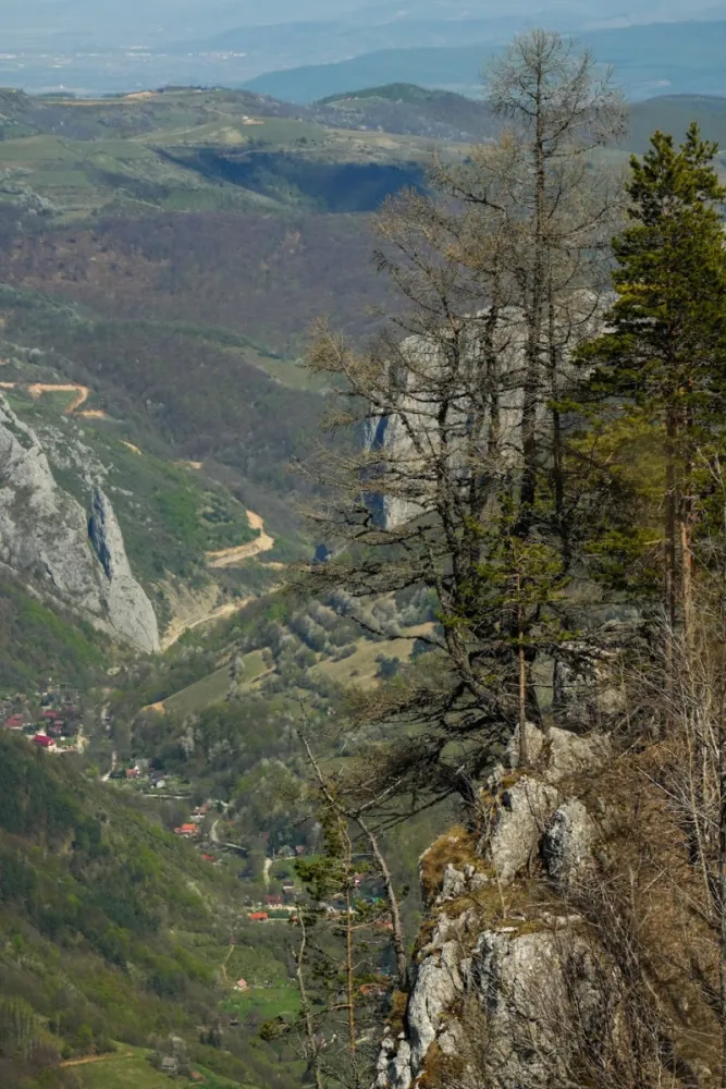 După de am admirat splendidele panorame, aproape aeriene, de pe vârf, am pornit către Piatra Cheii, practic un vârf frate al primului, cu panorame puțin diferite, dar cel puțin la fel de spectaculoase. Întrucât plimbarica din Cheile Pravului ne-a întârziat peste așteptări, am lăsat Cheile Întregalde pe altă dată, și am continuat pe PA până la intersecția acestuia cu marcajul CG, pe care aveam să-l urmăm până la final. A urmat o coborâre de vreo 35 de minute, pe alocuri accentuată, care ne-a scos foarte aproape de parcarea unde lăsasem mașinile cu opt ore în urmă.