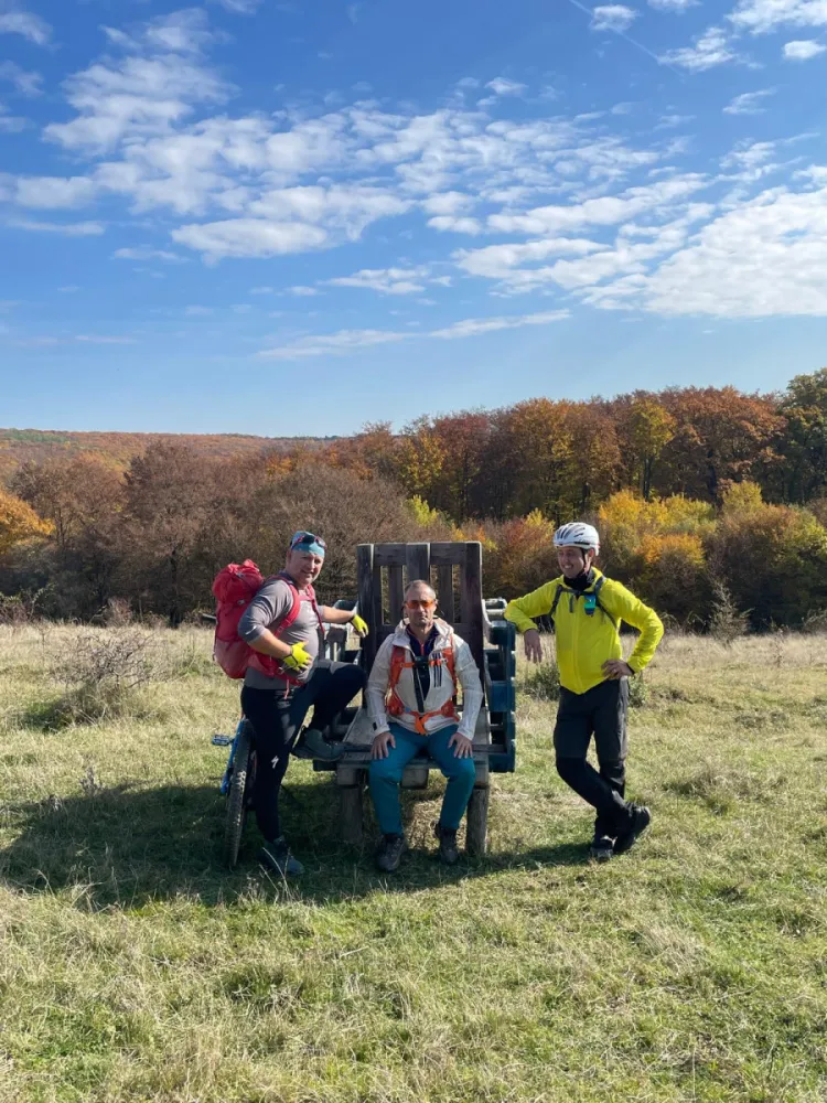 Ziua pe care am ales-o a fost cea pe care Meteoblue o anunța drept cea mai călduroasă și însorită de la sfârșitul lui octombrie. A căzut într-o joi. Știam că asta va reduce numărul de participanți, dar am preferat să fie o tură frumoasă, nu una în forță doar de dragul de a pedala. Așa că, în final, ne-am adunat patru oameni: eu, Claudia, nelipsitul Romeo și Florin, cu care, până acum, nu mi se mai intersectaseră potecile.
