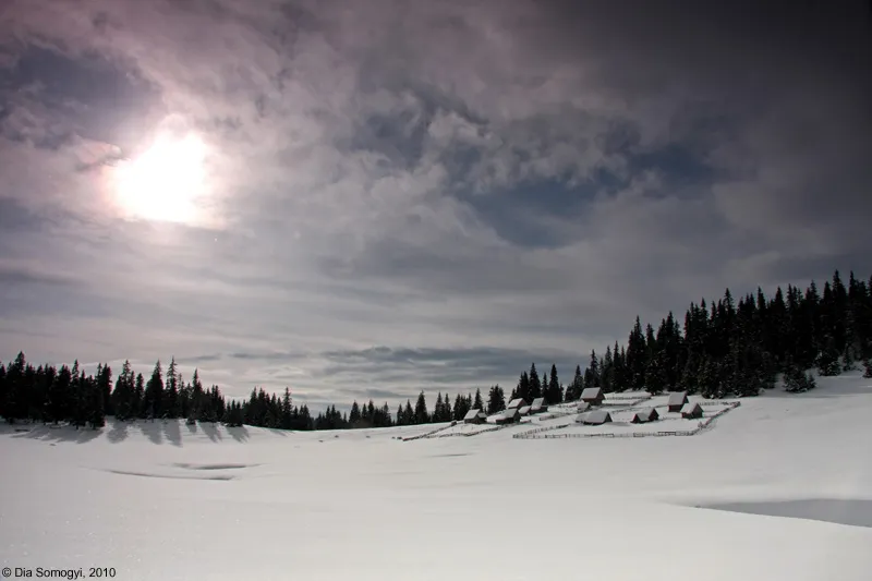 Mi se facuse sange negru de duca, si-o pofta teribila sa-mi inghete obrajii de ger iar palmele sa-mi fie fierbinti sub manusile din polar. Mi-era ciuda sa vad zilnic cum sacul de puf primit de la Mos Nahanny sta amortit in camera, soptindu-mi parca in fiecare vis „nu ti-e rusine sa ma tii la caldura?!” Si DA, simteam pana la lacrimi ca daca ma mai prinde saptamana viitoare fara sa vad brazi incarcati si zapada imaculata innebunesc! Si-atunci, dupa nopti nedormite de ‚in advance’, remediul s-a putut concretiza: o tura de 2 zile pe culmile ce-nconjoara Poiana Horii, o zona absolut adorabila si-n care respira viata!