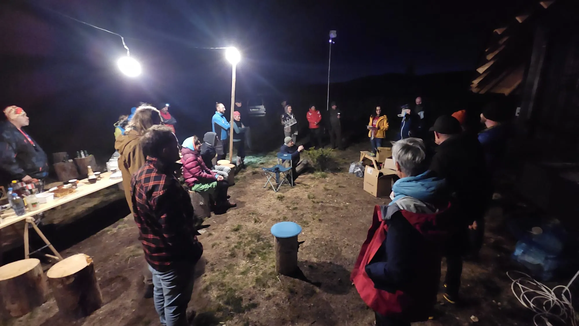 Primele mașini au pornit cu aprovizionările și ultimele materiale, iar o parte dintre colegi au urcat pe jos, într-o drumeție de seară. Ne-am adunat la refugiu, unde seara s-a transformat rapid într-un amestec de povești, râsete, bancuri și voie bună. Cu toții eram nerăbdători pentru drumeția de a doua zi.