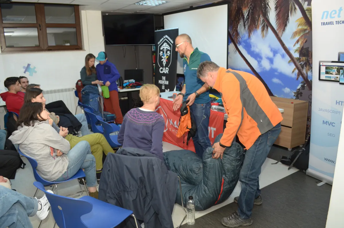 Prima întâlnire a avut loc pe 3 Aprilie, in Cluj în ideea de a ne familiariza cu toată plaja de accesorii obligatorii dar și optionale pentru o tura mai lunga pe timp de iarna. De la tipuri de saci de dormit, la materiale si la layere de corp, pana la vase de gătit, șervețele ultra eficiente sau tips and tricks ca sa nu îngheți - foițe care te încălzesc instant și cum sa te bagi la somn în cort când ți-e rece. Toate foarte utile insa putin cât sa ai și ce sa povestești necunoscătorilor sau celor care au o pasiune de a găti în locuri wild.