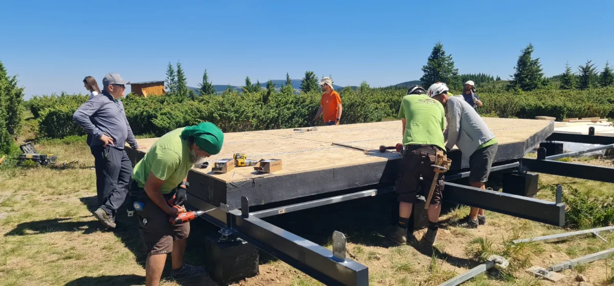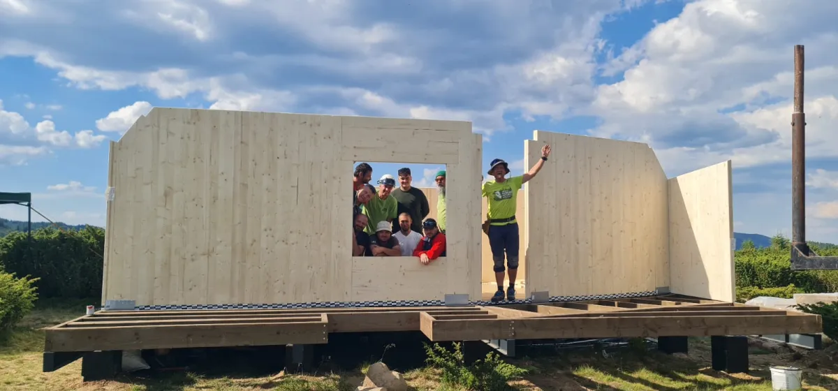 Vineri, 4 iulie, am trecut printr-un moment-cheie: panourile CLT (Cross Laminated Timber) - adică elementele structurale ale refugiului au fost: