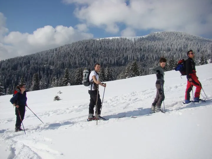 Ne-am echipat rapid si-n scurt timp, cabana ce ne-a fost gazda calda (poate prea calda) si foarte primitoare, a ramas goala pana spre lasatul serii. Unii cu emotii de concurs, altii entuziasti sa testeze gheata sau schiurile,altii sfatosi si invatacei binevoitori cu noii lunecaciosi sau cataratori pe gheata. Pe scurt, ziua a fost fascinanta! Astfel, ne-am reunit acolo sus, la Rachitele- peste 20 de prieteni,din Cluj, dar si din Oradea, Timisoara, Targu Mures! Si-mi permit sa zic, foarte reusita diversitatea! Studenti, profesori, job-uisti si parinti cu prichindei! Am avut parte de o zapada superba, fulguia marunt, dar atat de frumos si cuminte!... si pe tot parcursul turei ne opream sa admiram participantii la concurs, atenti sa