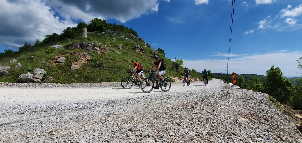 Intram pe un drum largit, aflat si el in modernizare, care merge partial pe o curba de nivel, dupa care incepe o urcare in serpentine de cativa kilometri pana intr-o saua. Aici segmentul modernizat se incheiesi intram pe vechiul drum de piatra lat cat o masina (car) si incepem sa coboram spre Tecsesti.