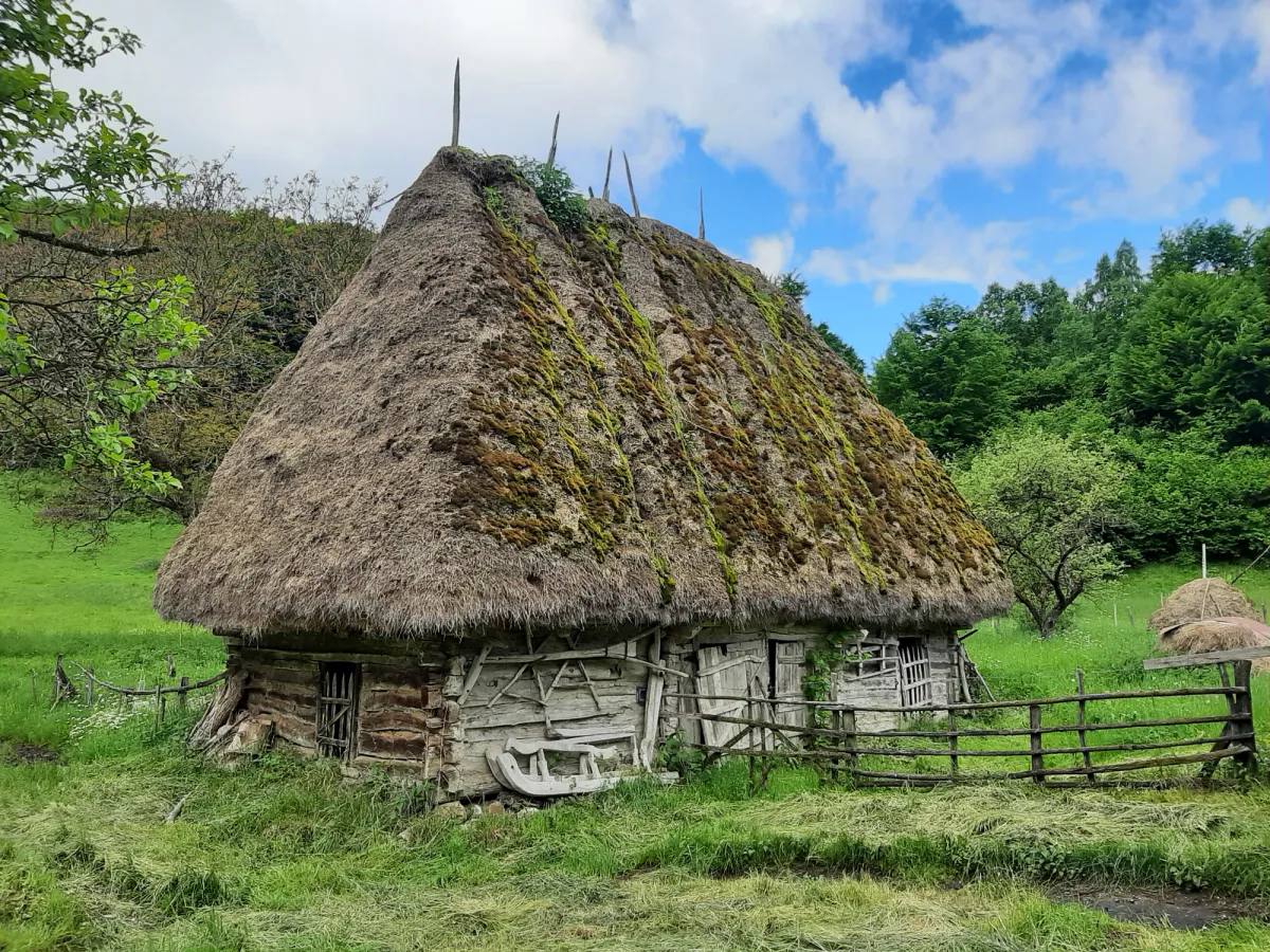 Mai avem putin si ne apropiem de primele case din partea de sus a satului Valea Inzelului, punct de la care pe drum a fost turnat un strat de piatra concasata pana la iesirea la DJ 107l. Parcurgem o portiune de cateva sute de metri prin sat si admiram mai multe case si grajduri traditionale motesti cu “caciuli” de paie si care se incadreaza perfect in peisaj.